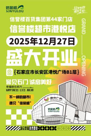 備受矚目的信譽樓超市石家莊港悅店將于12月27日盛大開業,這家營業面積約5000平方米的全新超市也將為石家莊東部地區居民帶來全新的一站式購物體驗。